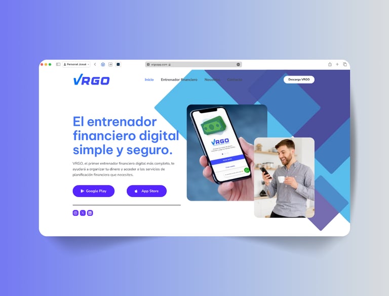 Estructuración y diseño de pagina web para Vrgo App, respetando su identidad gráfica, clic para ver.